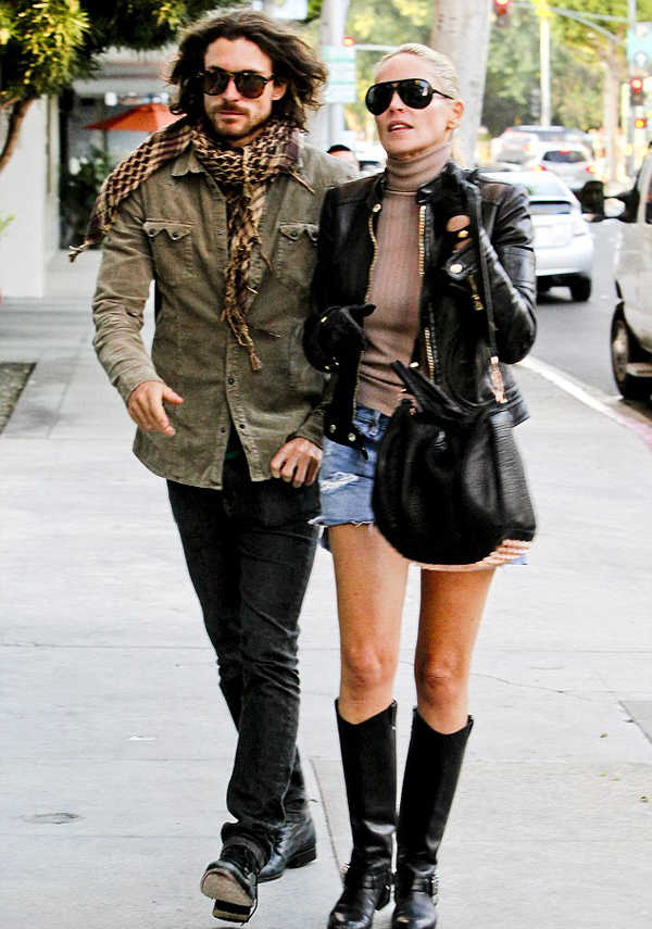 Η Sharon Stone παρόλο που είναι 54 χρονών ξέρει να διατηρεί πολύ καλά το σώμα της αδύνατο και γυμνασμένο…Η ηθοποιός εμφανίστηκε αμακιγιάριστη, με κοντό τζιν σορτς και δερμάτινο σακάκι, συνοδευόμενη από τον σύντροφό της Martin Mica, μοντέλο από την Αργεντινή.